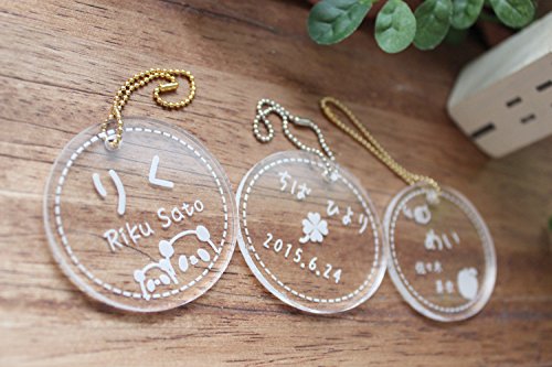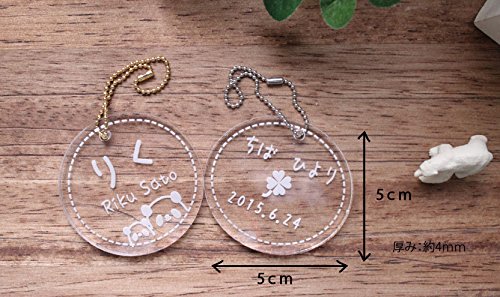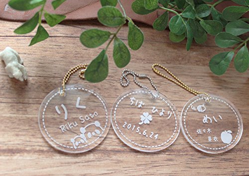 - ●アクリル板に文字・イラストをレーザー彫刻しています。お入れするお名前はひらがな+漢字、お名前+電話番号など組み合わせは自由!