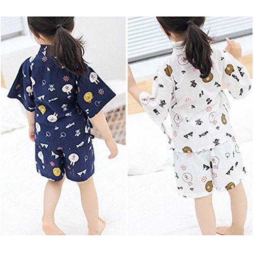 KUUQA 甚平 綿 上下セット 男の子 女の子 兼用 キッズ こども 浴衣 子供服 着物 和服 花火 お祭り パジャマ 選べる2色[紺、白] 4サイズ[100 110 120 130 cm]