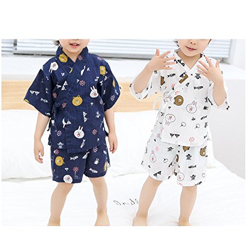 • 【2色】選べる2色:紺、白。柄は可愛いウサギと熊などの和柄です、男の子、女の子兼用の子供服です。