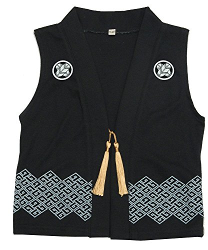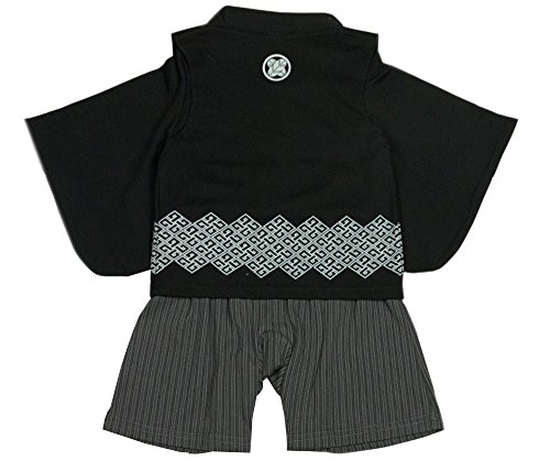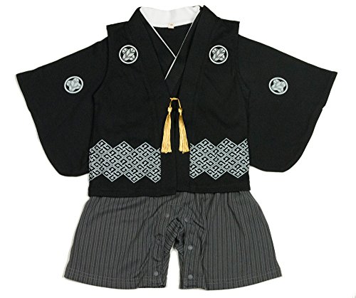 (キョウエツ) KYOETSU 袴ロンパース 袴風 カバーオール+羽織風ベスト 2点セット 男の子 ベビー着物 (袴ロンパース/羽織風ベスト) (70cm, 着物黒+羽織黒)