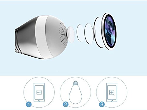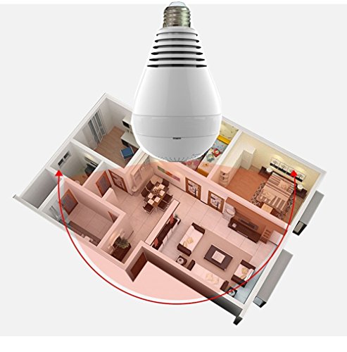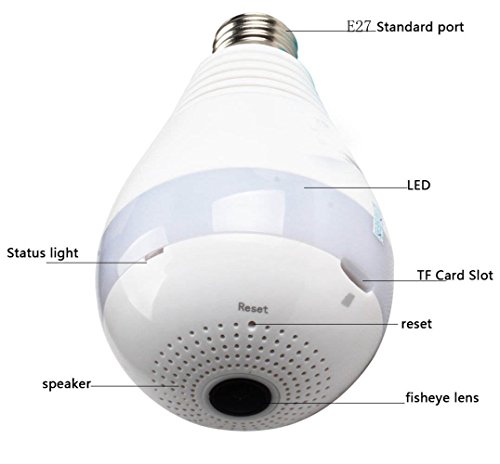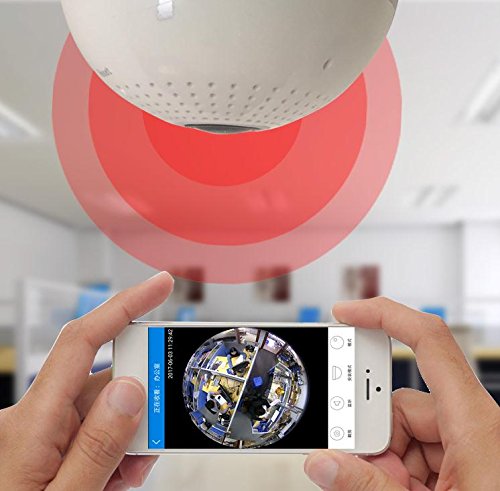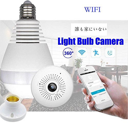 - 360度電球型【特徴】: 遠隔監視対応のIPネットワークカメラ ,高画質100万画素 レンズ搭載 ,約10mの夜間監視可能な赤外線LEDを3個搭載 ,動体検知録画及びメール送信機能搭載 ,双方向通信