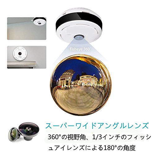 - 1/3 "プログレッシブスキャンCMOS魚眼レ ンズ P2P Wifi IPカメラ、960P HDビデオ 360°魚眼レンズ視野が広い: •いつでも、どこにいても インターネットに接続された、リモート 監視はスマートであなたのために準備され ています