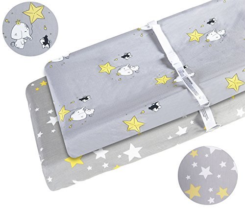 変更パッドカバーセット2パック100 %コットンFits標準Contoured Changingテーブルパッドカバーfor Baby男の子または女の子Gray Elephant and Yellow Stars Gray Elephant グレー 43178-173908