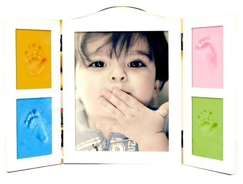 かわいい赤ちゃんの写真と一緒に手形足形を飾ることができるフォトフレームです。