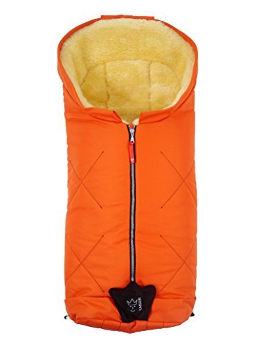 High quality sheepskin footmuff with central zipper;Drawstringaround the head;6 belt-slots;nubby material on the back to preventslippage;refl ector-stripes around the bottom