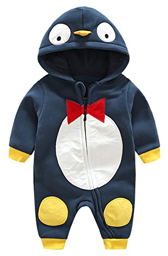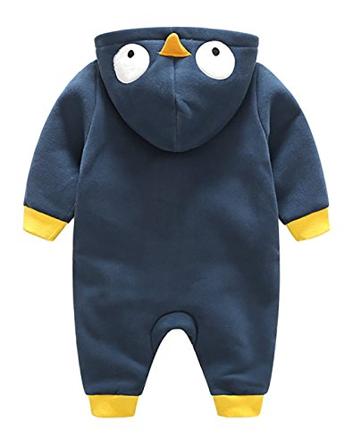 KKalawa ベビー服 男の子 カバーオール 秋冬 厚手 防寒 前開き あて布付き 記念写真 ペンギン ブルー 6-9ヶ月
