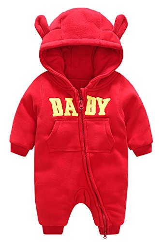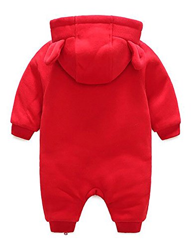 ジャンプスーツ ベビー服 女の子 新生児 カバーオール 長袖 フード付き 厚手 前開き 赤ちゃん 防寒着 パーカー 秋冬服 出産準備 出産祝い 9-12ヶ月 レッド