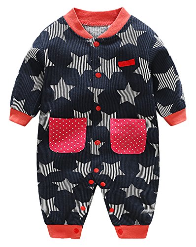 新生児肌着 ボディオール ベビー服 コンビ肌着 男の子赤ちゃん 長袖 厚手 前開き 秋冬 出産準備 出産祝い 星柄 3-6ヶ月