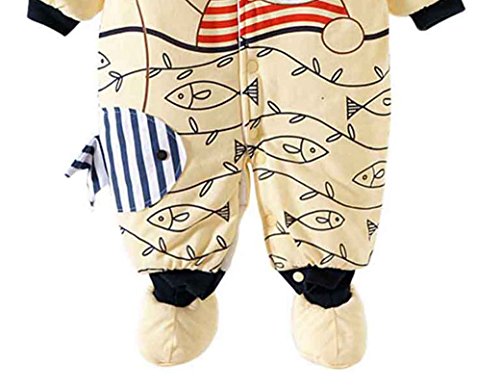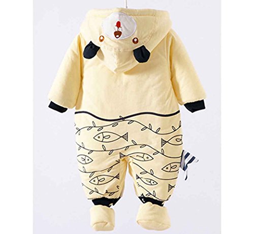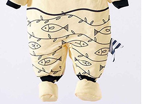 かわいいゆるキャラがたくさん描かれているカバーオールです。上から下までスナップが開閉でき、お着替えも楽ちんですよ。暖かい足カバー付きのカバーオールなので、寒い日のお出かけも安心です。
