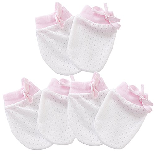Kalevel 3組み 赤ちゃん ミトン メッシュ ベビー 手袋 かきむしり ひっかき ミトン 新生児用ミトン 綿 手袋 通気性 ベビー プレゼント 女の子 男の子 0~6ヶ月(ピンク)