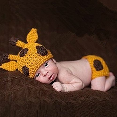 Kalevel Cute Cartoon Giraffe Style Infant Newborn Baby Girl Boy Crochet Beanie Hat Clothes Baby Photograph Props by Kalevel [並行輸入品]
