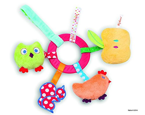 Kaloo Colors Activity Toys My Activity Rattle- A rattle full of surprises to stimulate baby while having fun. The materials have been specially selected for their extreme softness, and each element contributes to developing baby's senses: his vision is stimulated by vibrant colors, a teething ring soothes his sensitive gums, an owl to pull vibrates as goes back up, and baby can grab rattles and varied textures made for small baby hands to develop fine motor skills. This very handy, easy to carry toy is easy to attach onto a stroller, playpen or car seat using the Velcro hook. 30 cm, suitable from birth, surface wash by hand only.