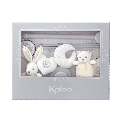 【出産祝い/ギフト】Kaloo フランス製 クリーム色とやさしいグレイの色合いののかわいいモビール。 出産祝いにも最適です。 オルゴールの音楽に合わせて4つのミニトイがゆっくり回転、赤ちゃんもきっとご機嫌でしょう。 対象年齢:新生児以上。 オルゴールの曲は美しい'トロイメライ'。 木製スタンドで厚さ4cmまでのベットバーに取り付け可能です。 オルゴールメロディの追加はできません。