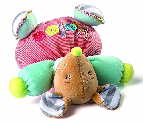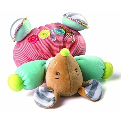 Kaloo Bliss Small Mouse will quickly become your child's favorite. Designed in France and standing at nearly 5 inches tall, this mouse's body is made from the softest cotton that your little one will love cuddling with. This mouse has the word 'Kaloo' stitched to his front with different fabrics, complimenting his adorable embroidered mouth, eyes and whiskers. Created to last through many years of play, his floppy, grey and white striped mouse ears can withstand a toddler's pulling and playing. The variety of soft fabrics from his face and ears to his collar to his body provide visual and tactile interest, encouraging your little one to explore new textures. This mouse rattles gently when shaken, delighting and captivating baby.