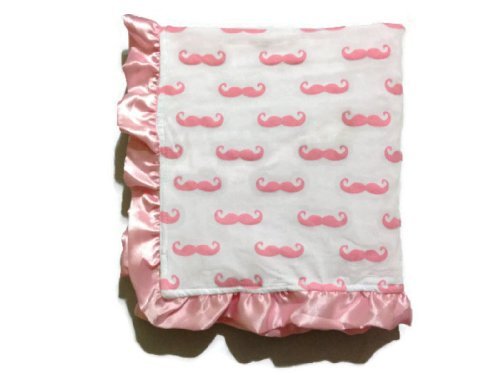 KWC - Soft and Cozy Large Minky blanket - White & Light Pink Mustache (Hipster) [並行輸入品]