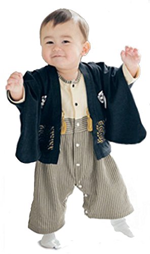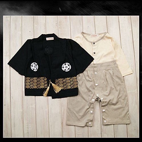 (カナアサ)KanaAsa ベビー キッズ 男の子 紋付風 オール 羽織付き ロンパース 結婚式 初節句 誕生日 お正月 七五三 黒 (90, 黒)