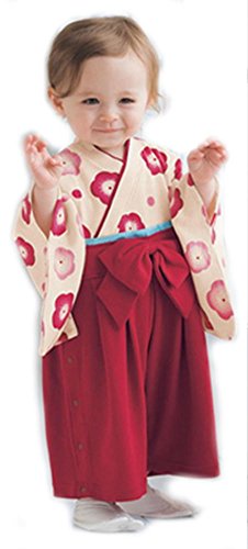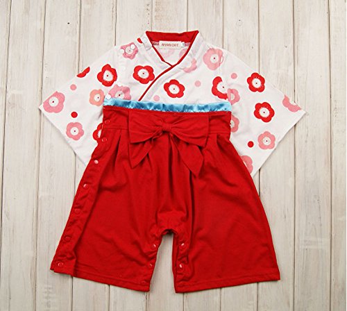 - 紅梅模様が可愛い着物風のベビー用袴ロンパース♪