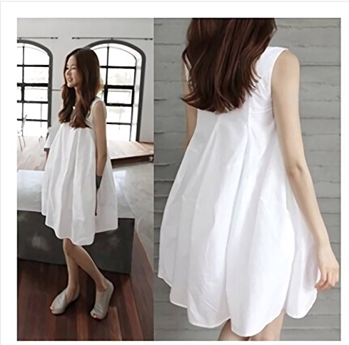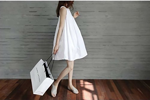 KanaAsa(カナアサ) レディース ふんわり ゆったり ショート丈 ワンピース マタニティ Aライン ノースリーブ 白 (XL)