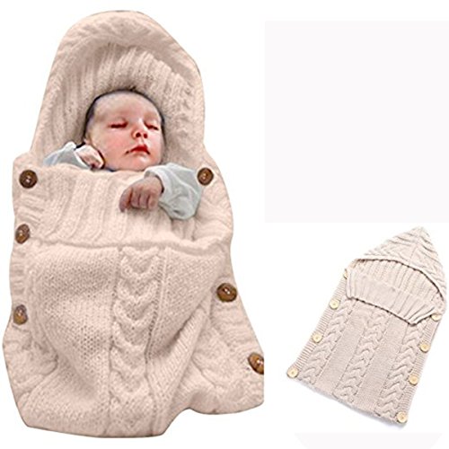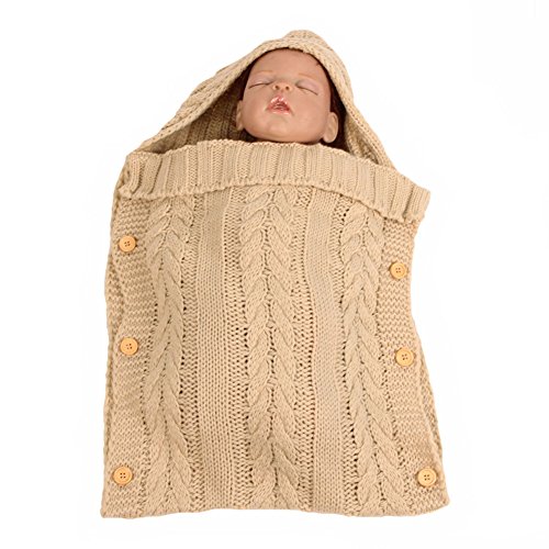 Kanemt ベビー用寝袋 ニットおくるみ 赤ちゃん 柔らかい肌触り 手編み感 ブランケット 秋冬 出産祝い 記念撮影 可愛い (ベージュ)