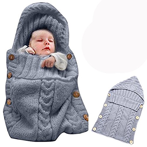 Kanemt ベビー用寝袋 ニットおくるみ 赤ちゃん 柔らかい肌触り 手編み感 ブランケット 秋冬 出産祝い 記念撮影 可愛い (ライトグレー)