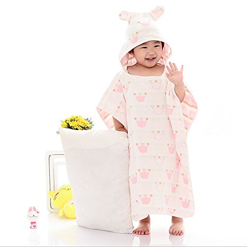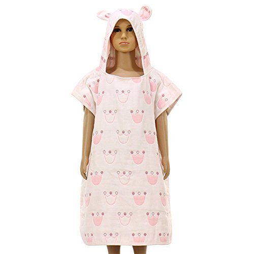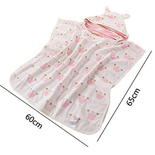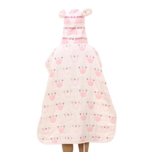 Kanemt フード付き バスタオル 子供 ベビー タオル おくるみ 動物柄 可愛い 4重ガーゼ 出産祝い ピンク