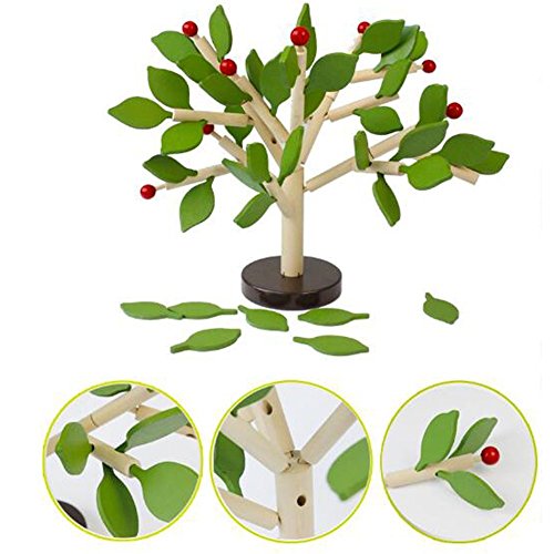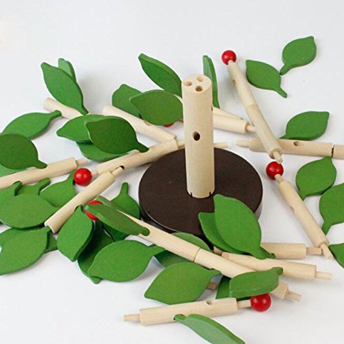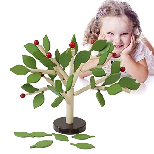 木製おもちゃ バランスゲーム 木の葉を差し込む 知育玩具 積み木 手指 能力 トレーニング グリーン