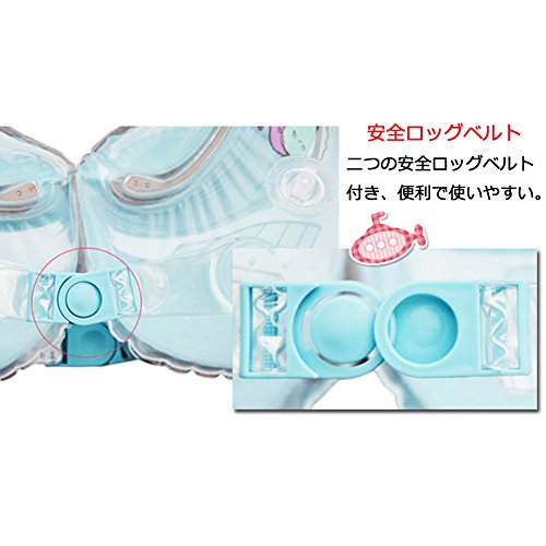 - [ご注意]必ず、ベルトが外れていないか、空気線を確実に閉め、空気量が適量か、空気漏れなど異常がないかをご確認ください。異常がある場合は、すぐにご使用を中止してください。空気ポンプの部品が、赤ちゃんの口や目に入らない様にご使用・保管してください。空気を入れ過ぎたり、高圧ポンプなどを使用すると破損の原因になります(外周部にシワが少し残るくらいが適量です)。お子様が足を延ばしてちょうど底につく程度の水深でご使用ください。