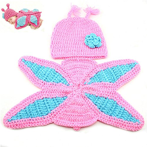 Kanemt ベビー用着ぐるみ コスチューム 寝相アート 手編み感 新生児 赤ちゃん ヘアバンド付き 出産祝い 可愛い (蝴蝶)