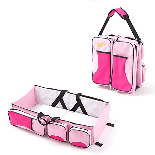 赤ちゃん マザーズバッグ ベビーベッド 外出用 折り畳み オムツ替え 持ち運び便利 大容量 多機能 ポケット多い 旅行 ピンク
