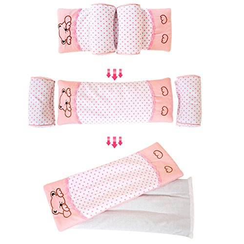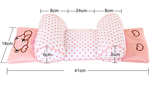 Kanemt ベビー枕 寝返り防止クッション 絶壁頭矯正 肌触りいい 赤ちゃん枕 可愛い 幅の調整可能 熊ピンク