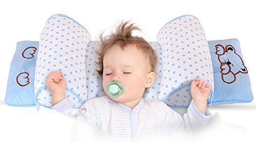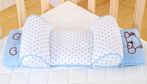 Kanemt ベビー枕 寝返り防止クッション 絶壁頭矯正 肌触りいい 赤ちゃん枕 可愛い 幅の調整可能 熊ブルー
