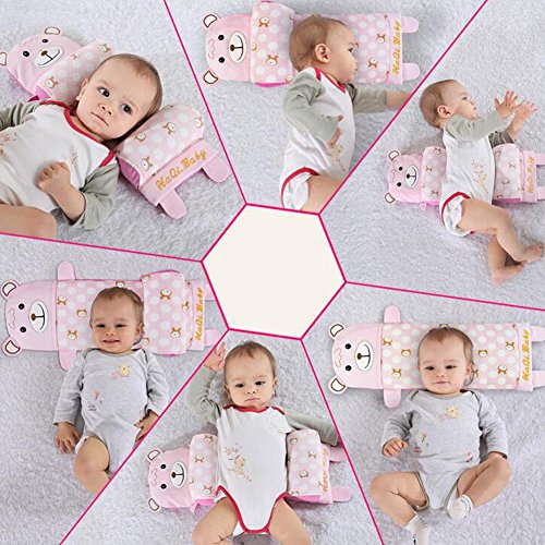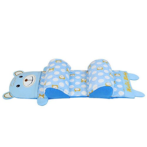 Kanemt ベビー枕 綿 通気 寝返り防止クッション 絶壁頭矯正 肌触りいい 赤ちゃん枕 超可愛い 柔らかい 幅の調整可能 熊 ブルー