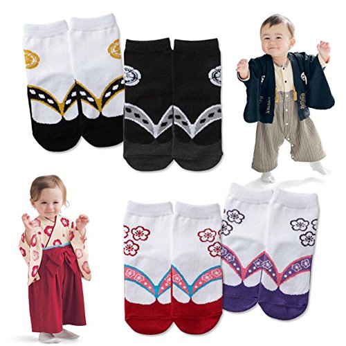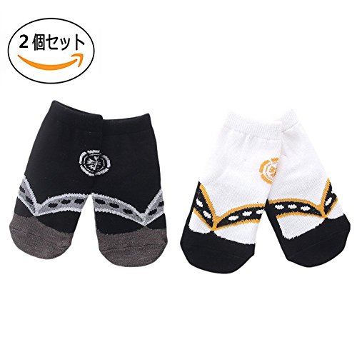 Kanemt ベビー キッズ 子供用 ソックス 足袋 草履柄 和風靴下 9-15cm 男の子 出産祝い 可愛い 2点セット (白と黒)