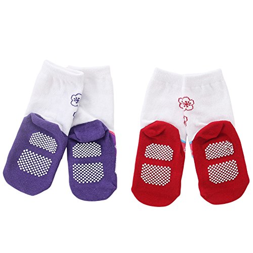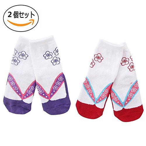Kanemt ベビー キッズ 子供用 ソックス 足袋 草履柄 和風靴下 9-15cm 女の子 出産祝い 可愛い 2点セット (レッドとパープル)