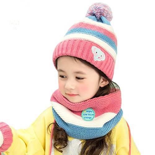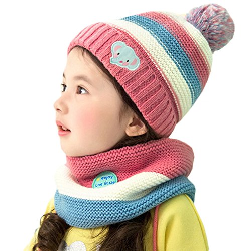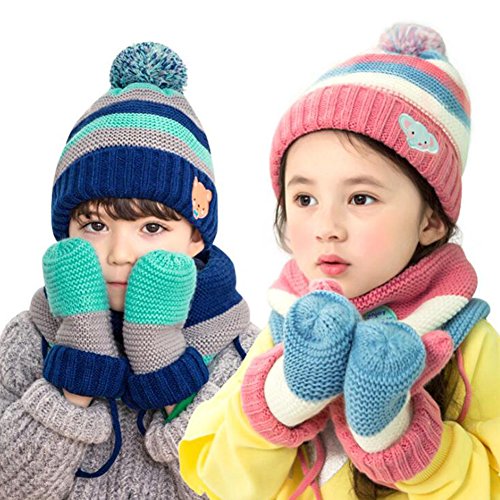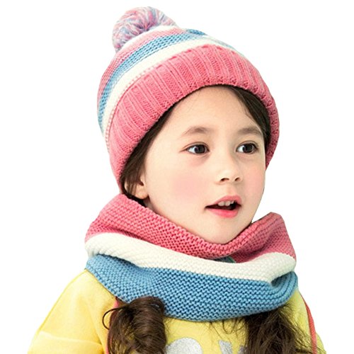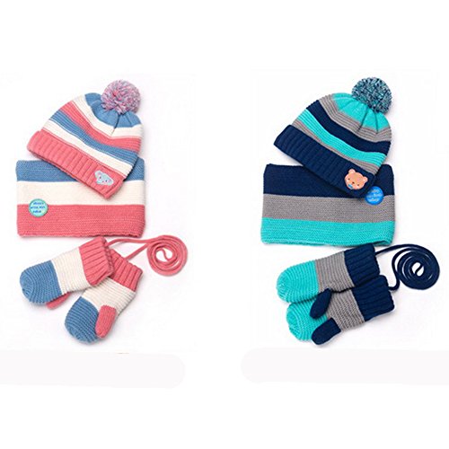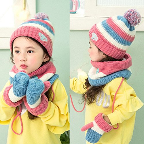 Kanemt 子供用 ニット帽子 マフラー 手袋 3点セット 冬 厚手 防寒 ニット帽 可愛い ピンク