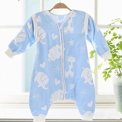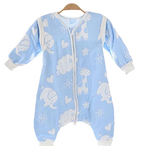 Kanemt ベビー 子供用 6重ガーゼ おくるみスリーパー オーガニックコットン 秋冬 寝袋 開脚式 出産祝いに ブルー動物 M