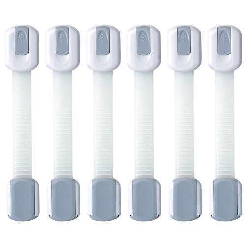 ベビー安全ロック、kaoriatoty子Proof調節可能なストラップ&ラッチのキャビネット、引き出し、アプライアンス、トイレシート、冷蔵庫、オーブン、マルチ使用ラッチ使用3 M粘着 – 6パック