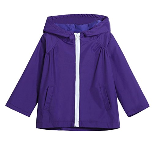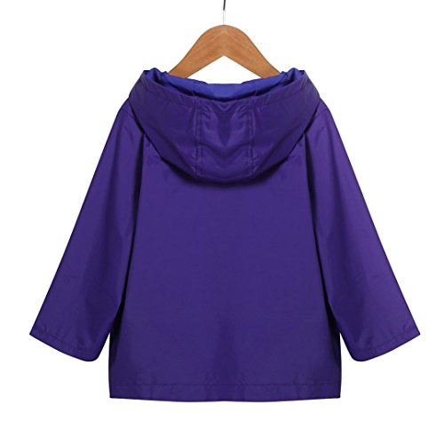 Karchi ウインド ジャンパー 無地 ジッパー フード付き 長袖 キッズ 男の子 女の子 アウター 秋服 マウンテンパーカー ジュニア 子供 ジャケット コート 3色展開 男女兼用 90 100 110 120 130 お出かけ 遊び着 通学 通園 普段着 子供服 (110, 紫)