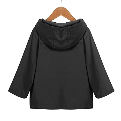 Karchi ウインド ジャンパー 無地 ジッパー フード付き 長袖 キッズ 男の子 女の子 アウター 秋服 マウンテンパーカー ジュニア 子供 ジャケット コート 3色展開 男女兼用 90 100 110 120 130 お出かけ 遊び着 通学 通園 普段着 子供服 (90, 黒)