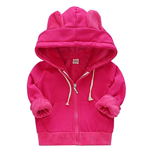 Karchi 赤ちゃん 少女 衣装 フード付き ストライプ ファッション カジュアル ガールズ ボーイズ ロングスリーブ パーカー 暖かい 冬のコート子供の子供ジャケット (110, ローズ)