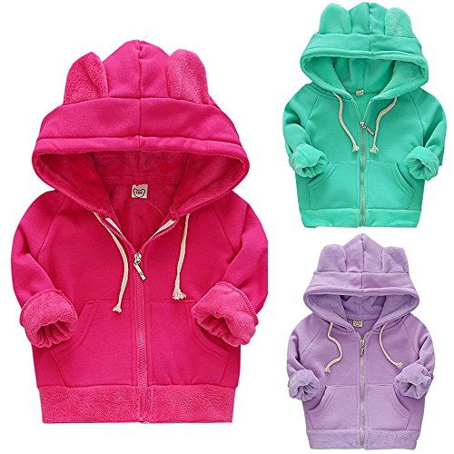 Karchi 赤ちゃん 少女 衣装 フード付き ストライプ ファッション カジュアル ガールズ ボーイズ ロングスリーブ パーカー 暖かい 冬のコート子供の子供ジャケット (120, ローズ)