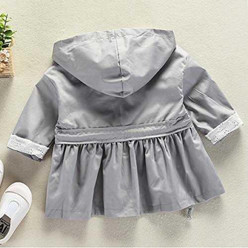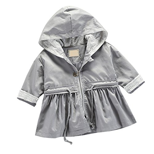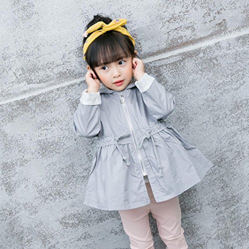 Karchi フート付き ジッパー トレンチコート 女の子 ドレスフル 韓国風 ガールズ 春 長袖 カジュアル 薄手 アウター 通学 通園 可愛い シンプル 無地 ジャケット80 90 100 110 120 (90, 灰色)