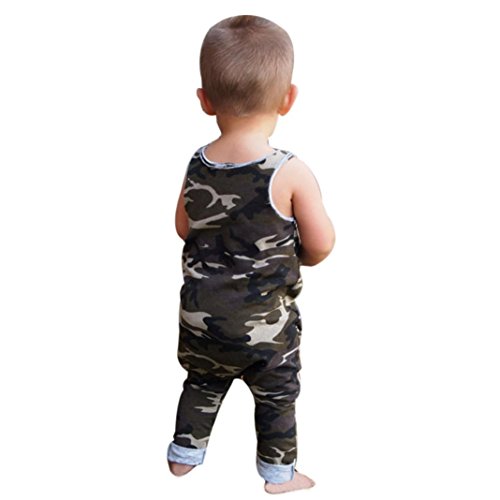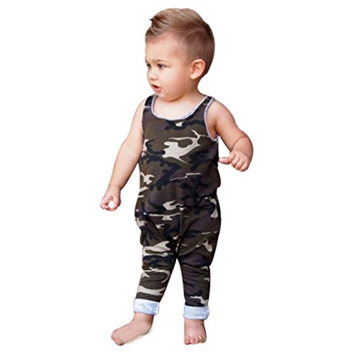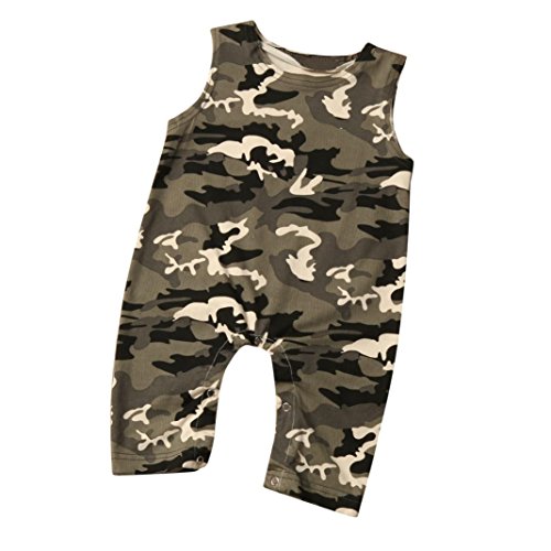 Karchi 子供服 子供オールインワン ベビー連体服 ストライプ 迷彩 袖無しロンパース ガールズ 男女兼用 普段着 カジュアル 可愛い 春夏 迷彩 (80)