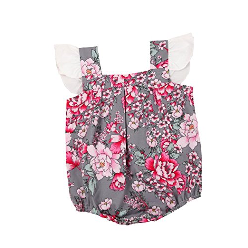 Karchi 子供服 子供オールインワン ベビー連体服 花柄 袖無しロンパース ガールズ 女の子用 普段着 カジュアル 可愛い 春夏 グレー (90)