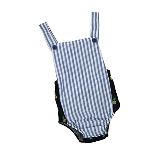 Karchi 子供オールインワン ベビー連体服 ボーダー柄プリント 袖なしサロペットパンツ ベビー ロンパース 女の子用 普段着 カジュアル 可愛い 春夏 ネイビ (90)
