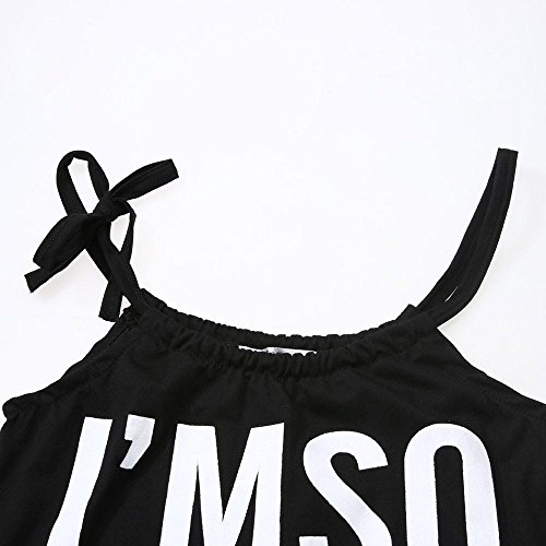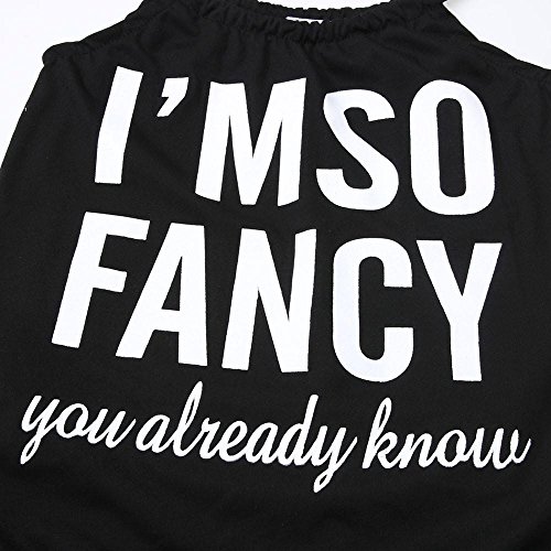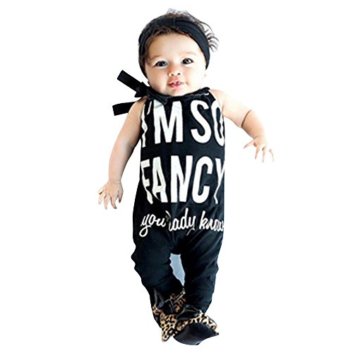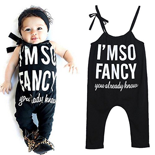 Karchi 子供オールインワン ベビー連体服 ”I'M SO FANCY you already kown”アルファベットプリント 吊りサロペットパンツ ベビー ロンパース 女の子用 普段着 カジュアル 可愛い 春夏 ブラック (110)