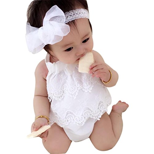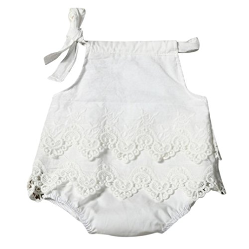 Karchi 子供オールインワン ベビー連体服 無地 吊りサロペットパンツ ベビー ロンパース レース 女の子用 普段着 カジュアル 可愛い 春夏 全3色 (60, ホワイト)