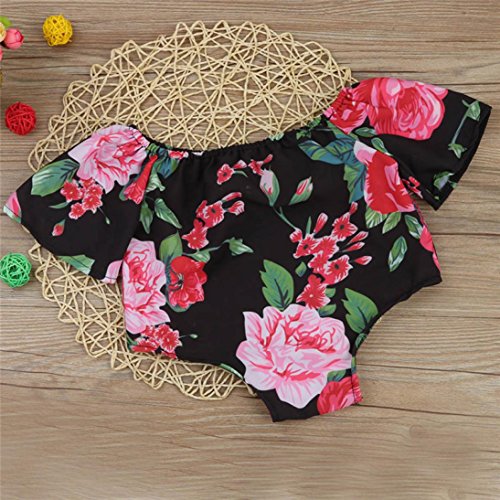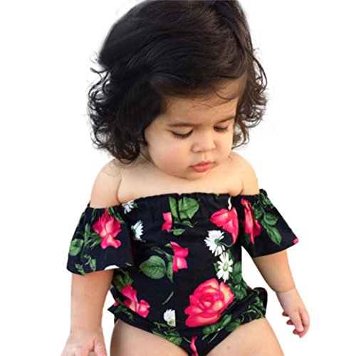 Karchi 子供オールインワン ベビー連体服 無地 ボートネックサロペットパンツ ベビー ロンパース 花柄 女の子用 普段着 カジュアル 可愛い 春夏 グリーン (80)