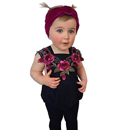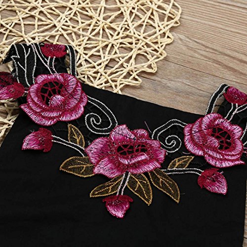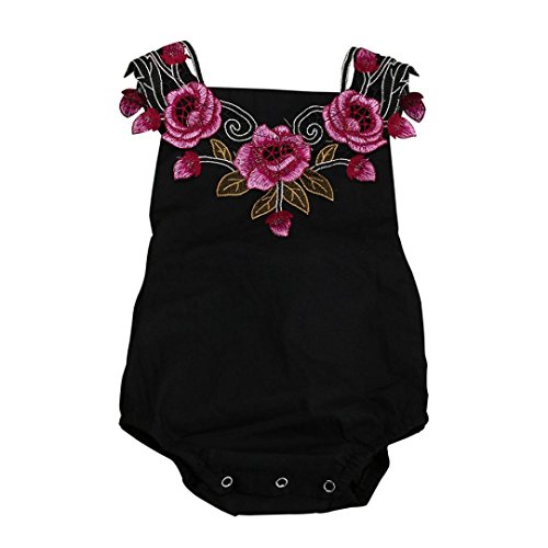 Karchi 子供オールインワン ベビー連体服 袖なし 無地 花刺繍 サロペットパンツ ベビー ロンパース 女の子用 普段着 カジュアル 可愛い 春夏 全5色 (70, ブラック)
