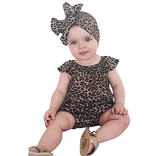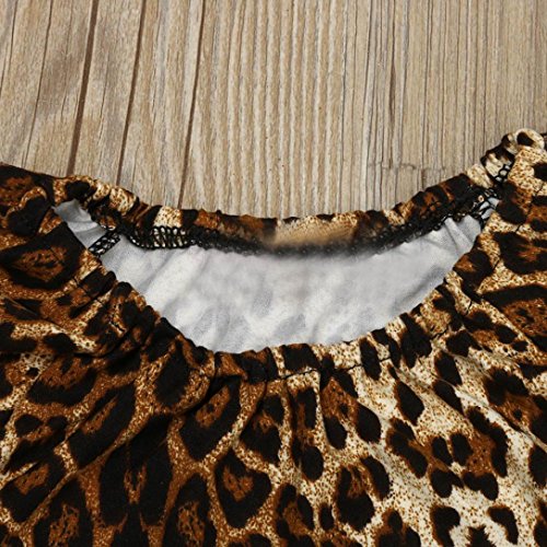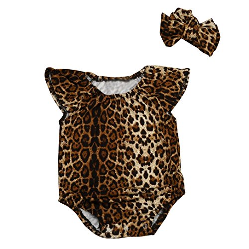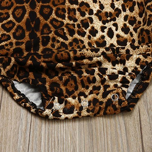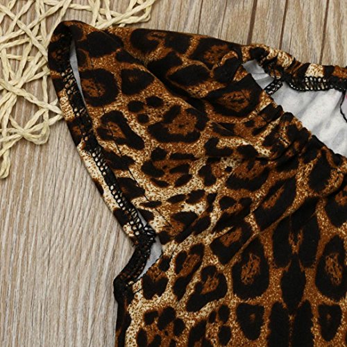 Karchi 子供オールインワン ベビー連体服 サロペットパンツ ベビー ロンパース レオパード柄 女の子用 普段着 カジュアル 可愛い 春夏 ブラウン (90)